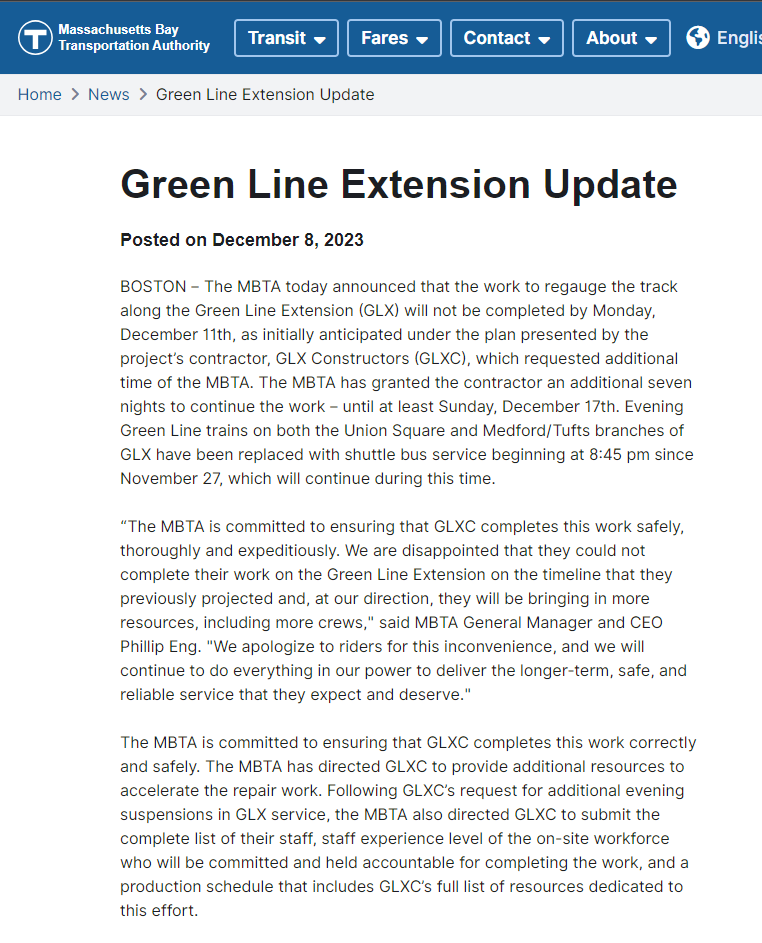 IMO, I'd rather 2 days of hardship and a normal full speed Lechmere Viaduct after that, instead of an extra year (12 months) of the Lechmere Viaduct slow zone slowing down commutes for months on end with no sight of relief.I've heard that it was canceled because of signal problems regarding the turn at Lechmere, and there's plenty of tweets to support this (like this), but it is odd that they then waited until the afternoon to cancel.