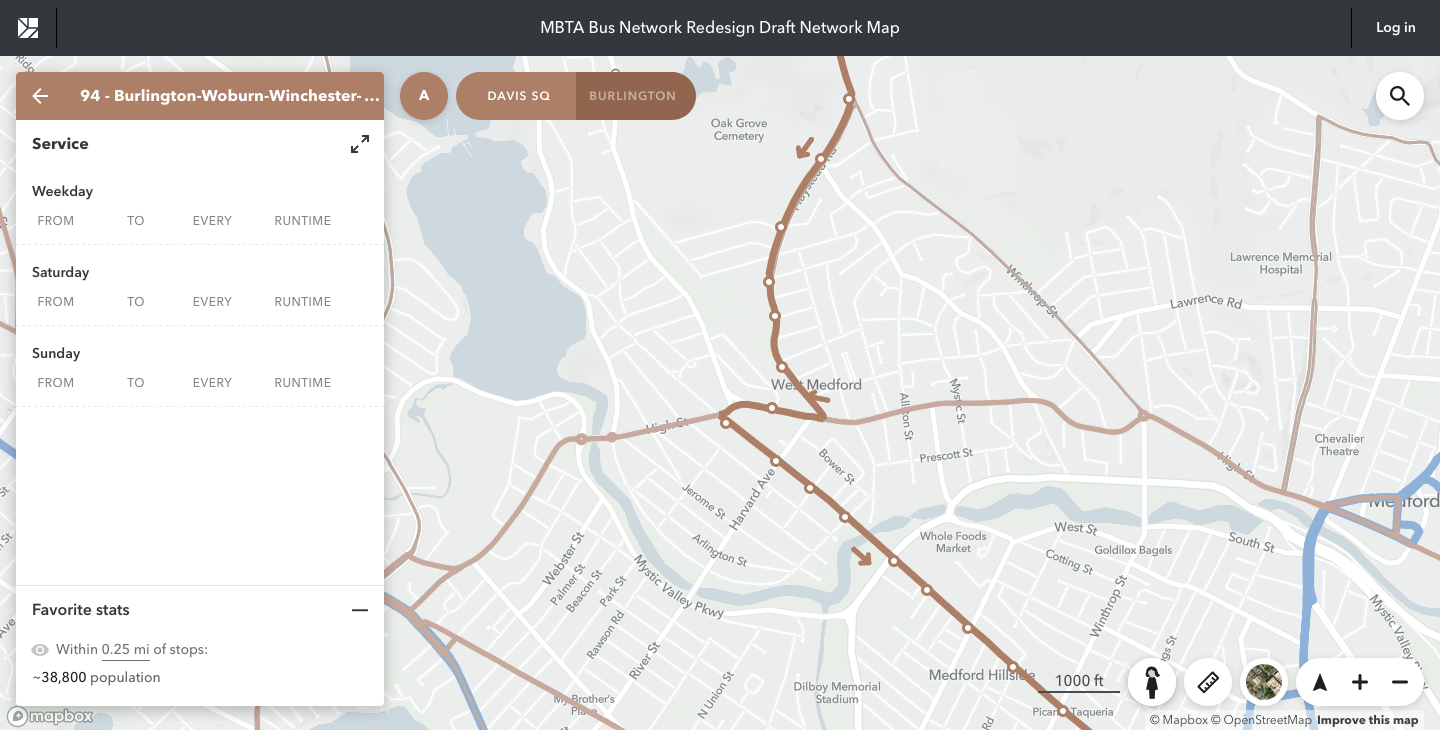 On the other hand, the interactive map shows the 94 skipping Harvard and going down High to Boston, so who knows what the actual route is.I love the new 94 funneling Woburn/Winchester/West Medford local service to GLX Tufts. This is a hyper local comment but although it is the most direct routing, how do they expect a bus inbound to take that weird right turn from Playstead onto Salem, cross the Lowell line tracks, then immediately turn left onto Harvard St? That has my safety radar at Spinal Tap 11. Would be awesome if the theory worked but man that’s a tough right left jog. Same thing almost on the outbound jog too.