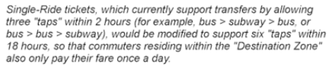 To avoid these riders being burdened by a double fare, the Single Ride (currently used on CharlieTickets and CharlieCards) would be modified to last 18 hours and six “taps”, very similar to today’s structure, where a Single Ride is good for multiple entries within a 2-hour period in order to accommodate transfers from buses. This would ensure that these commuters do not have to pay extra (as long as they keep their morning ticket for the afternoon).