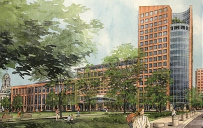 Some previous proposals during the past few decades that never materialized and the one on the left included an 80,000 sf convention center. I've been waiting half a century for that prime downtown lot to be developed! :)